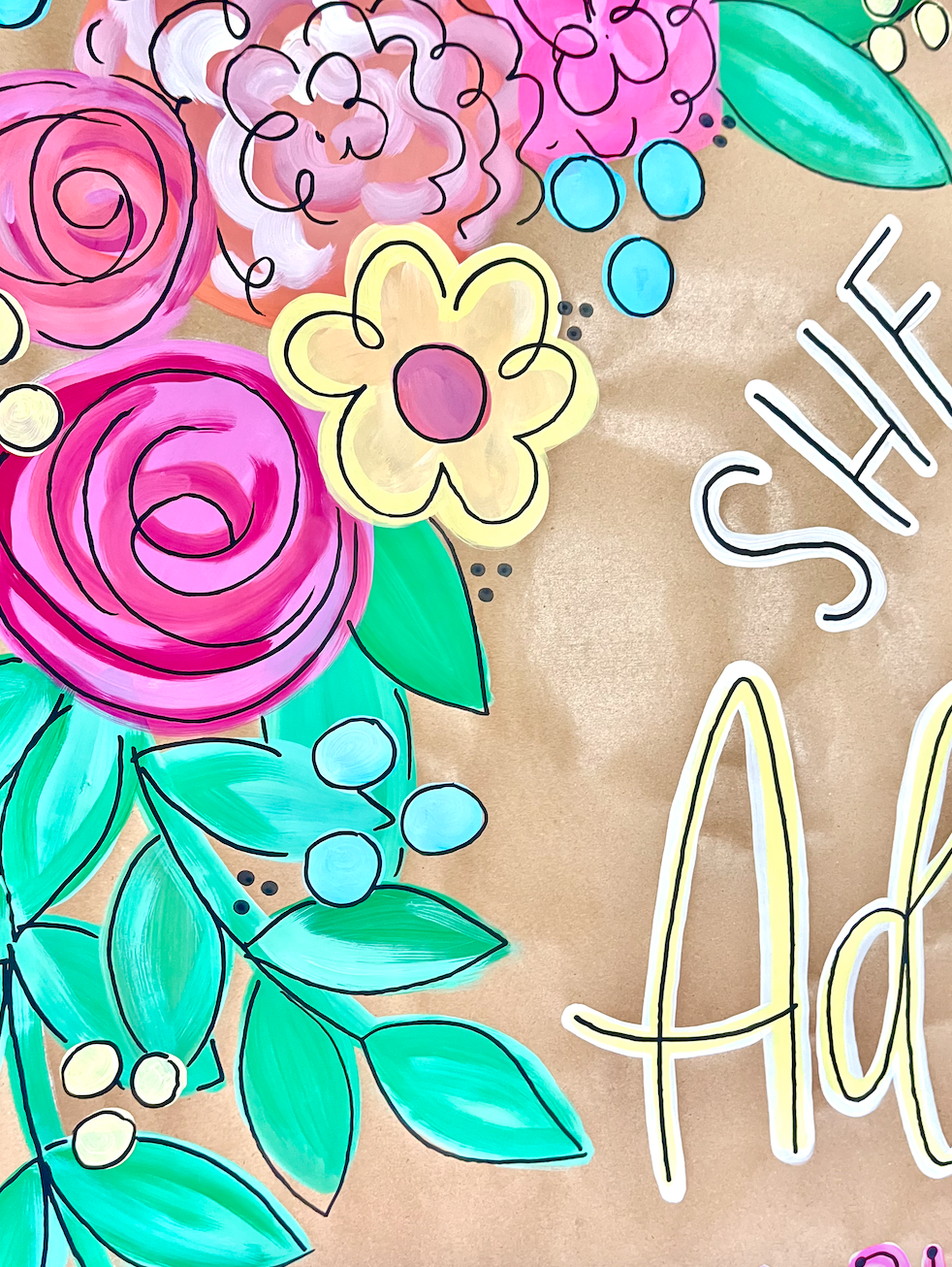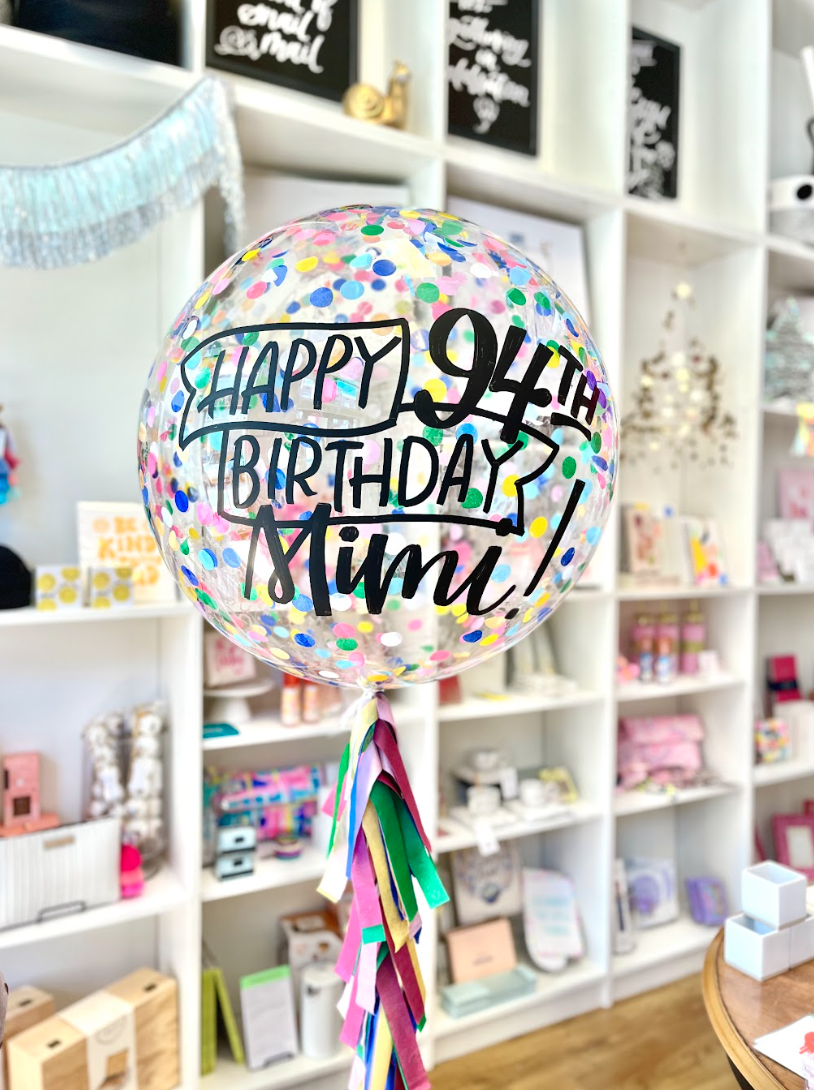 I specialize in custom hand-lettering on just about anything—balloons, banners, windows, walls, and (of course) paper! Whether it’s for a business, special occasion, or everyday space, I create one-of-a-kind pieces that add joy, charm, and personality wherever they go.